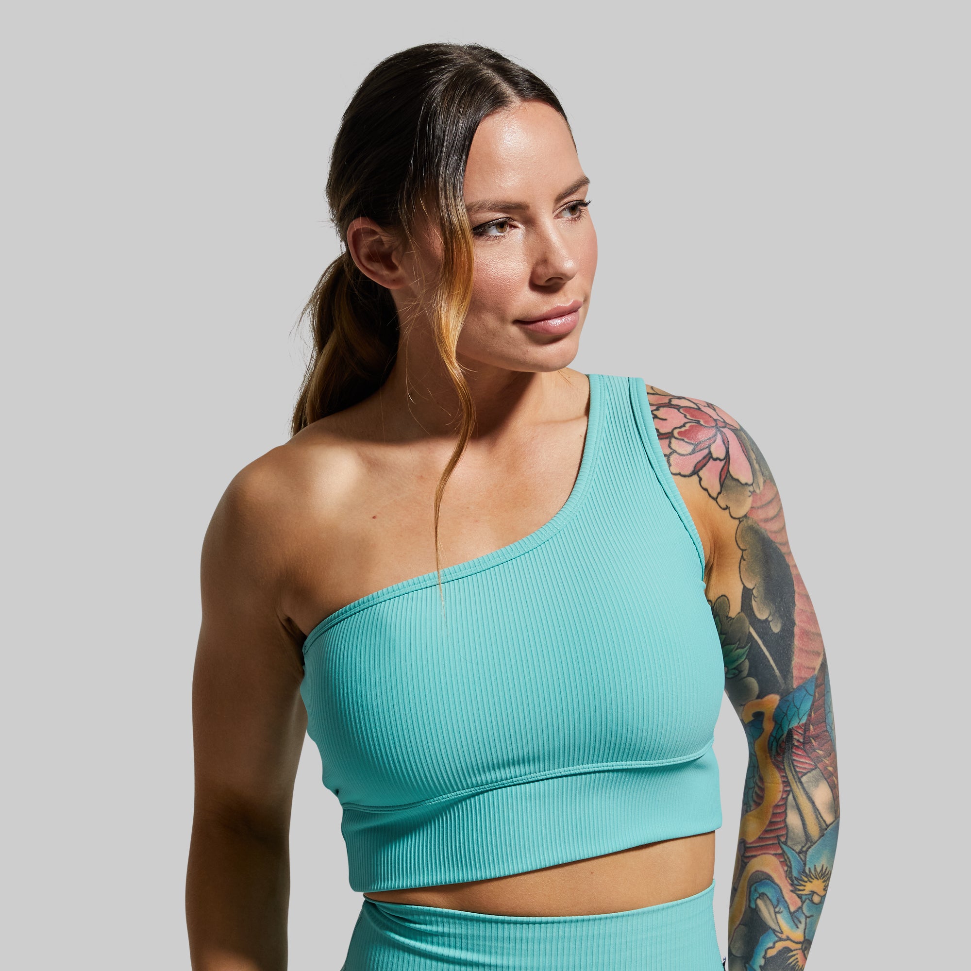 A 6 am yoga class with your crew calls for post-class coffee at your favorite local spot. To avoid having to run home for an outfit change. we made the Evolve Sports Bra. Its soft and stretchy ribbed fabric is durable enough for low-impact activities and the one shoulder strap design with extended body doubles as a crop top for casual outings.