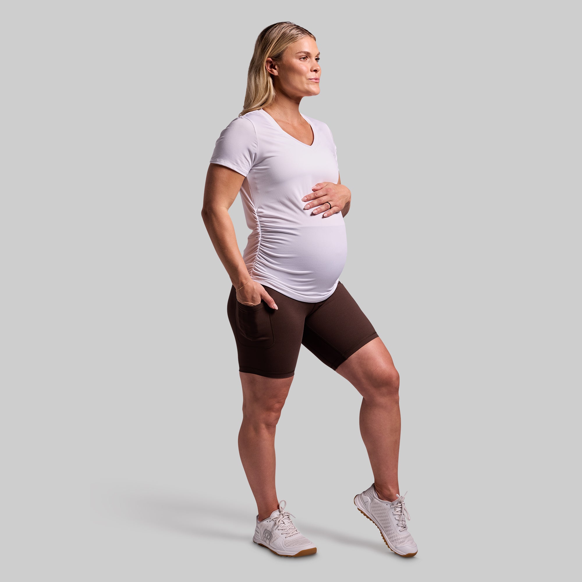 Maternity Athleisure Short Sleeve V-Neck (White)
