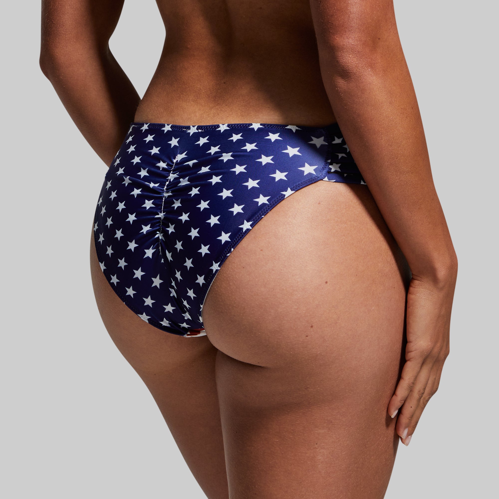 Whether you’re looking for a patriotic bikini bottom to enhance your gains from grinding at the gym all winter long or just want an extra touch of sexiness to your swimwear rotation. our Tidal swimwear delivers on all fronts. With six side straps along the hips and a ruched butt that provides an extra lift without riding up. these American flag cheeky bikini bottoms will quickly become a staple in your collection.