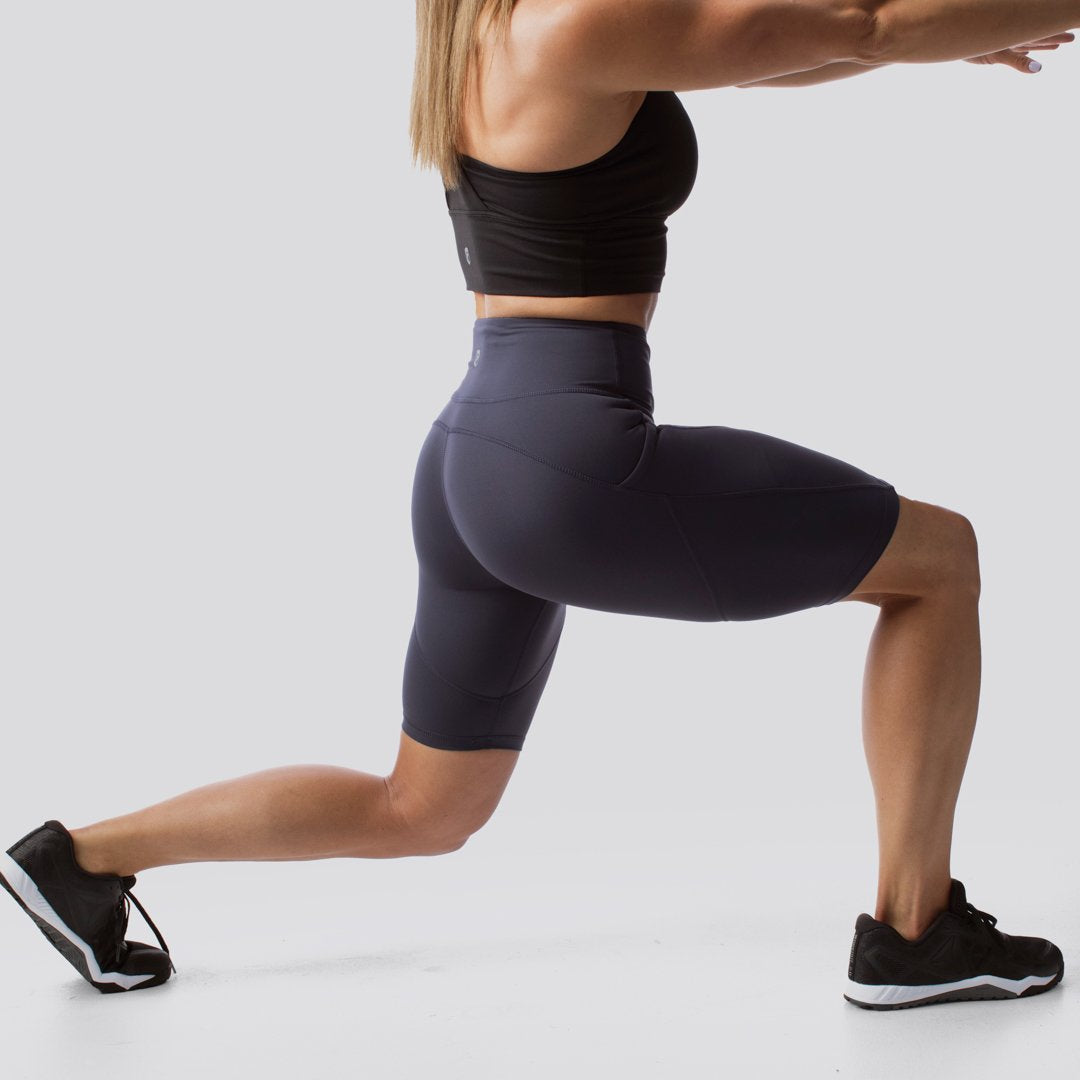We took the fabric from our Your Go To Leggings. added the pockets from our Rise & Grind Series and then an 8 inch inseam to create The Cadence Short. This short will be perfect for long runs. grueling bike rides. yoga class and even for those who simply want more coverage. ?Hit your stride in The Cadence Short!