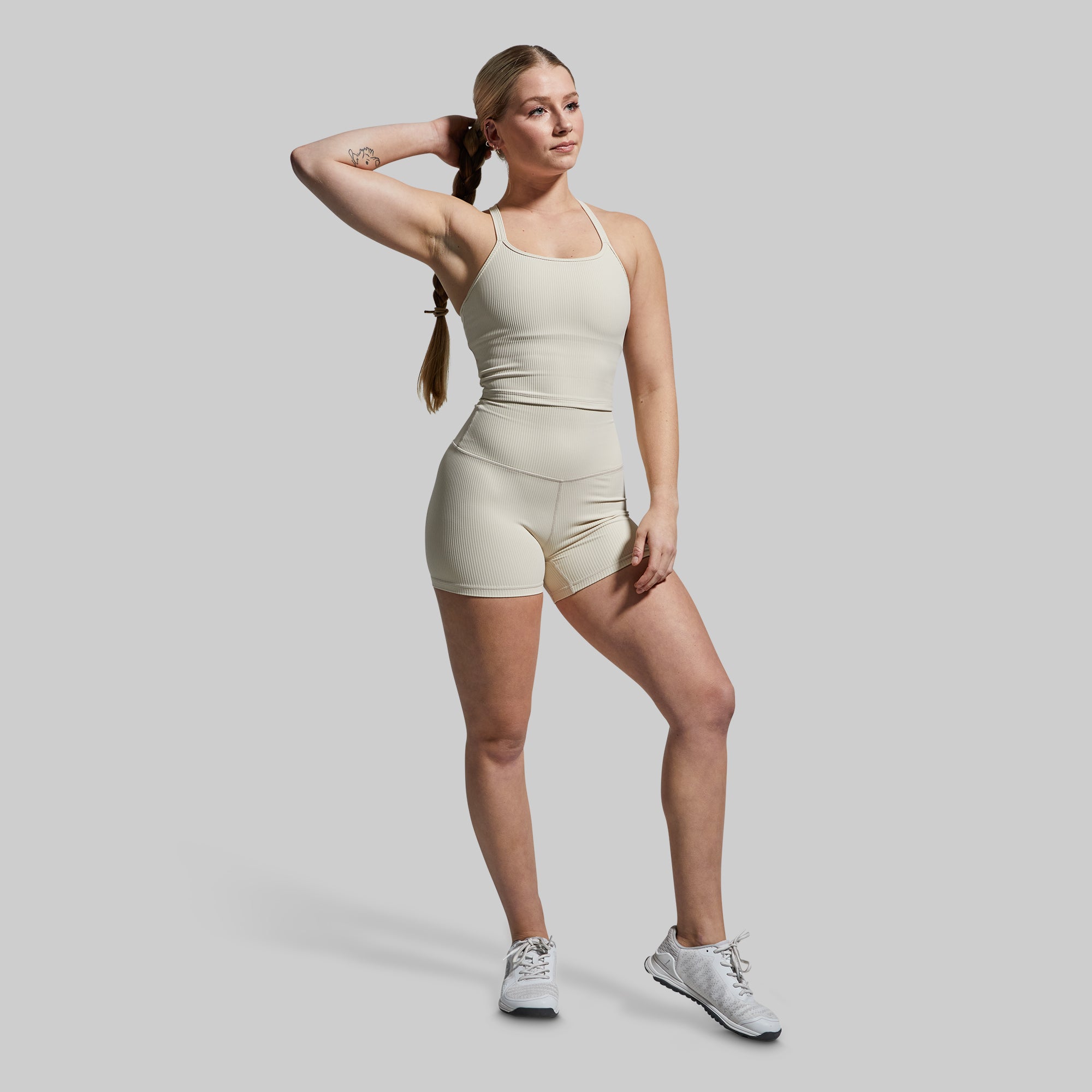 Compressive. flexible and supportive. the Limitless Short is made from our soft. ribbed powerKNIT fabric. With an ultra high-rise waist and sliglhtly longer 4 inseam. it was engineered to support you through everything from yoga to HIIT sessions.