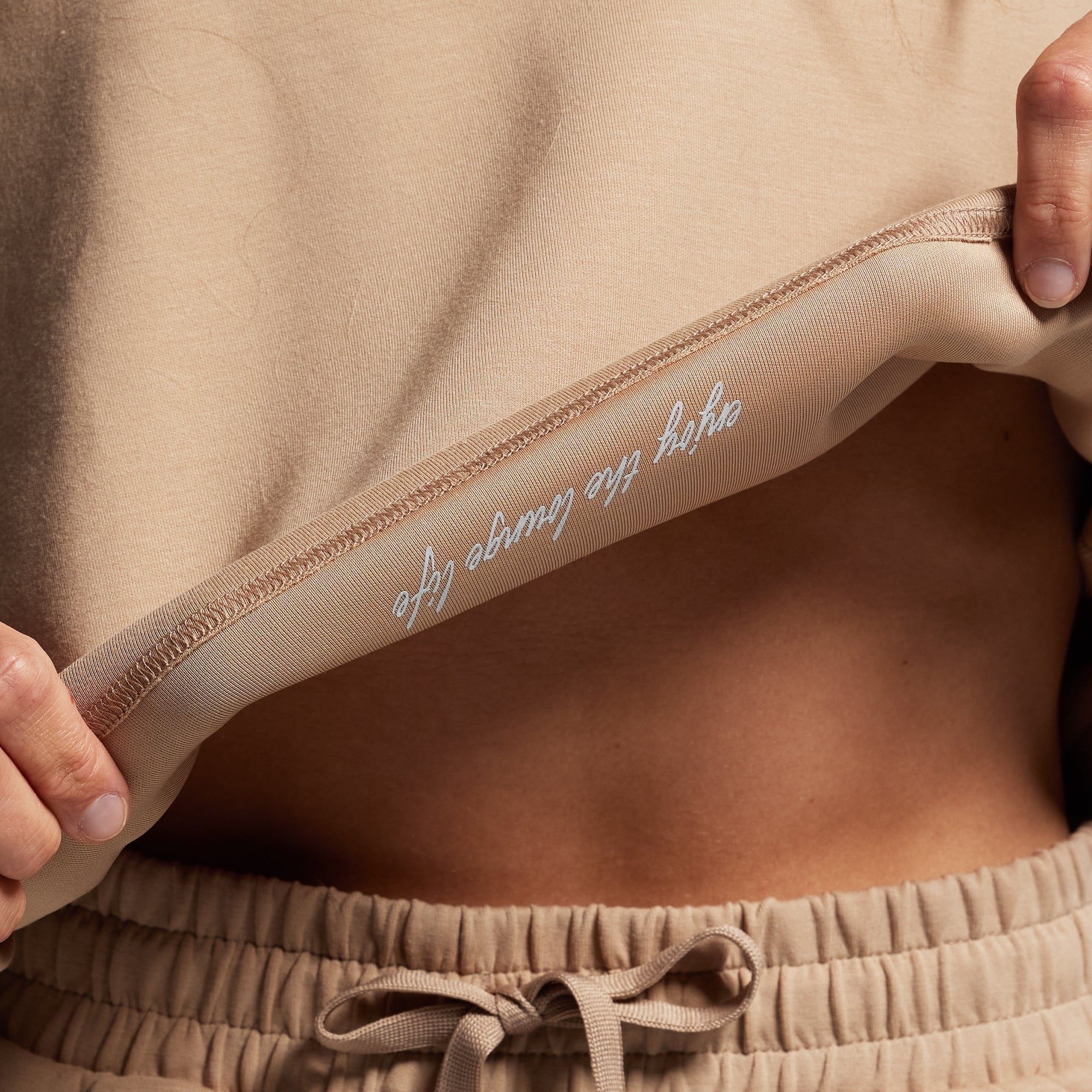 Take your rest day coziness to the next level. Featuring an extremely smooth and stretchy fabric. this pullover has a dreamy. cool-to-the-touch feel you’ll never get tired of. The best part? A flattering cropped fit and perfectly draped construction make our Lounge Lux Cropped Pullover perfect for both casual days out and relaxing days at home.